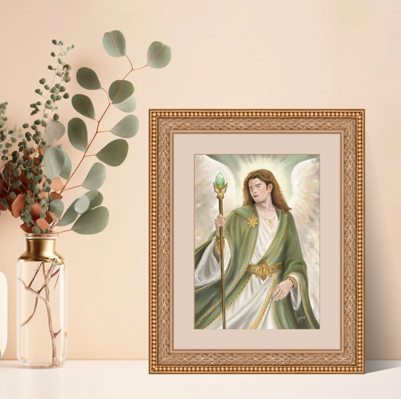Impression fine art de l’illustration que j'ai dessiné de l’archange Raphaël, imprimé par moi sur papier d’art texturé de qualité.